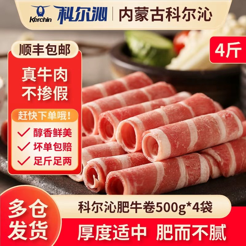 科尔沁生鲜雪花调理肥牛卷片4袋4斤火锅食材涮牛肉烤肉内蒙古草原