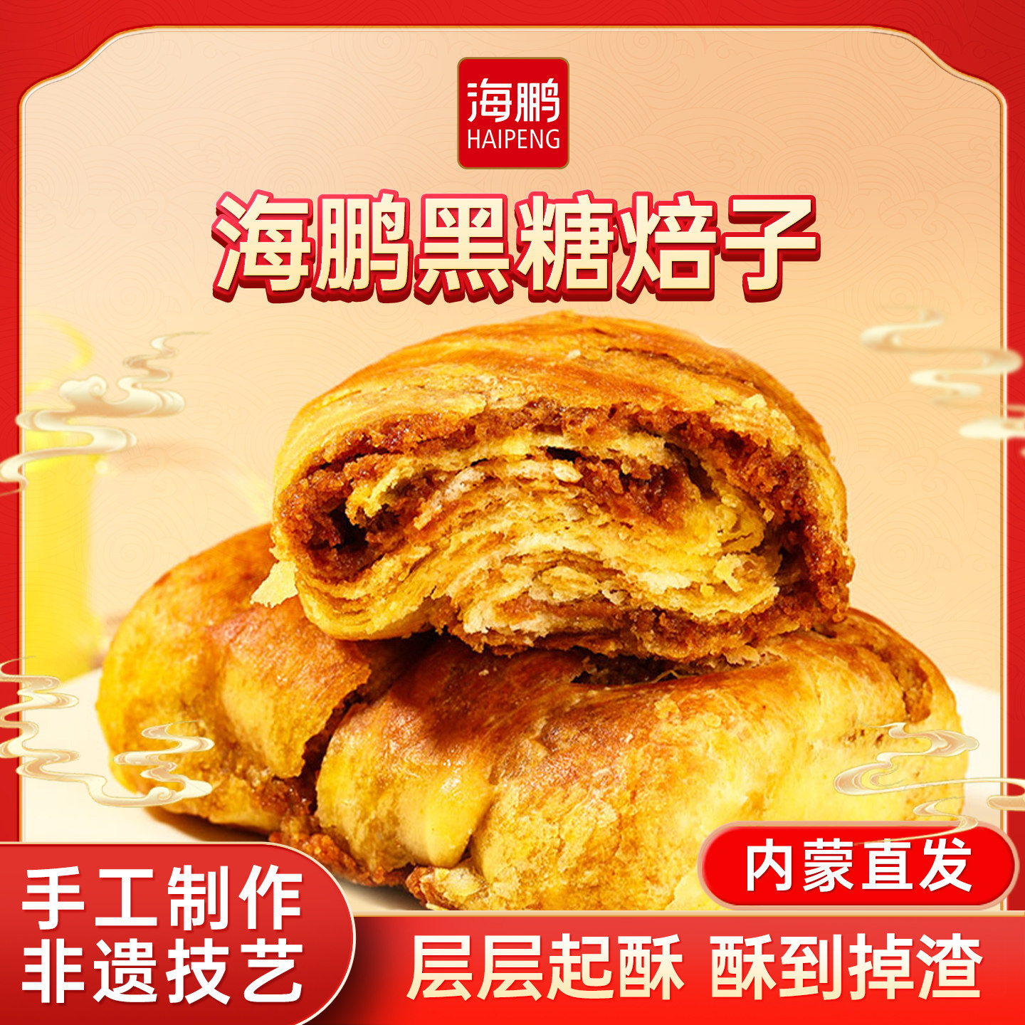 海鹏焙子内蒙呼市特产黑糖焙子600g/5枚烧饼早餐健康糕点丰镇月饼