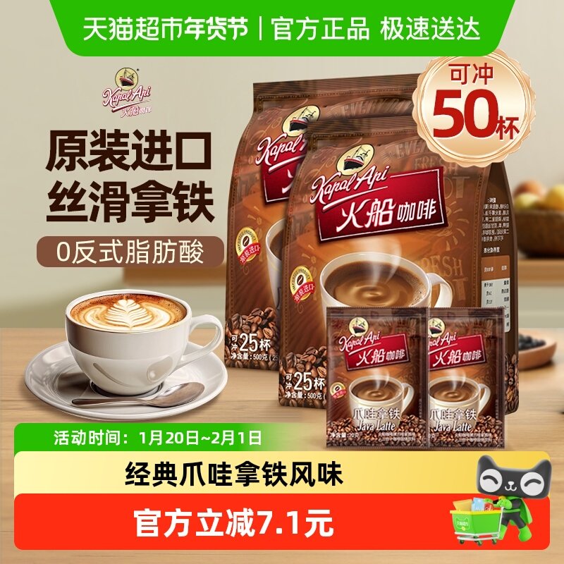 火船咖啡爪哇拿铁咖啡特浓印尼进口三合一速溶500克袋装原味饮料