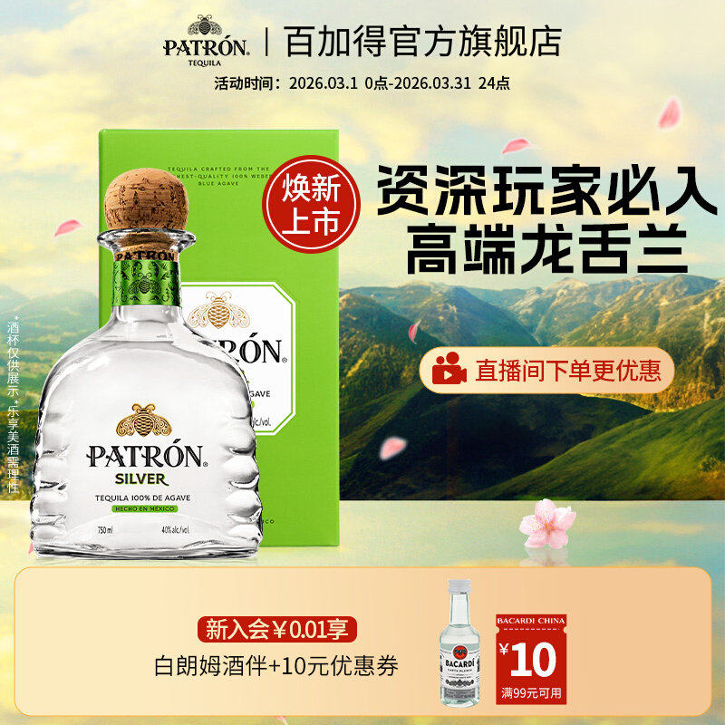 【国际大牌】Patron Silver培恩银樽龙舌兰酒洋酒调酒基酒750ml