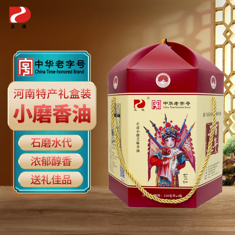 正道白芝麻小磨香油礼盒320ml×4瓶六角礼盒河南特产中华老字号
