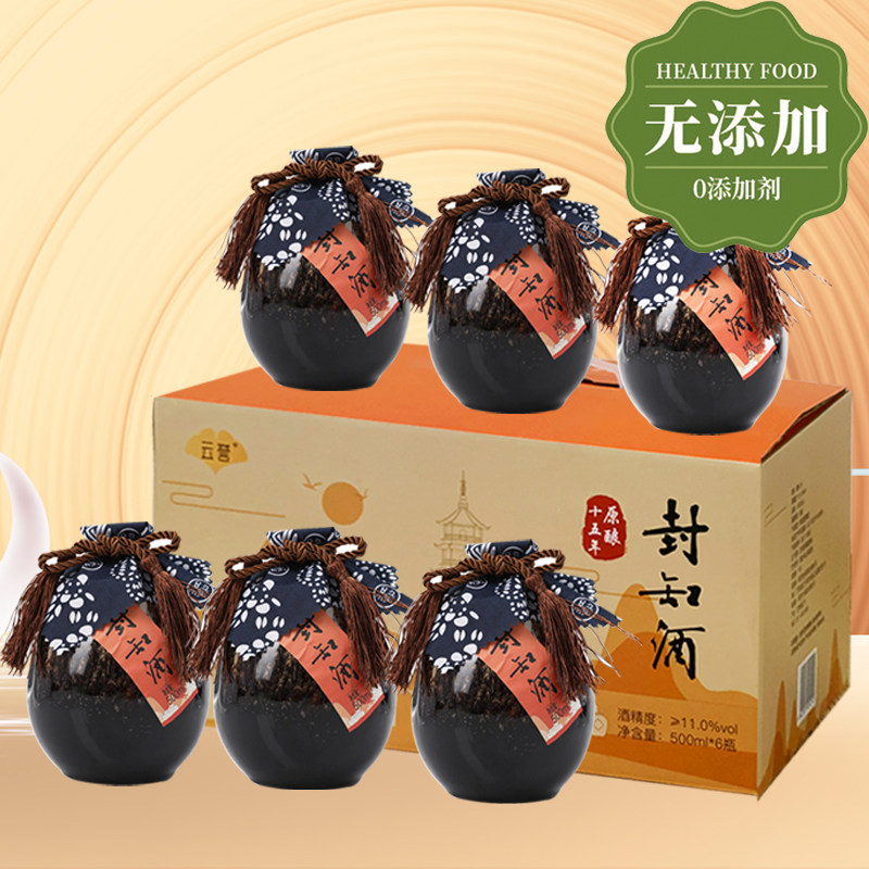 丹阳黄酒丹阳封缸酒八年陈酿半甜型酒500ml*6瓶年份封缸酒传统型