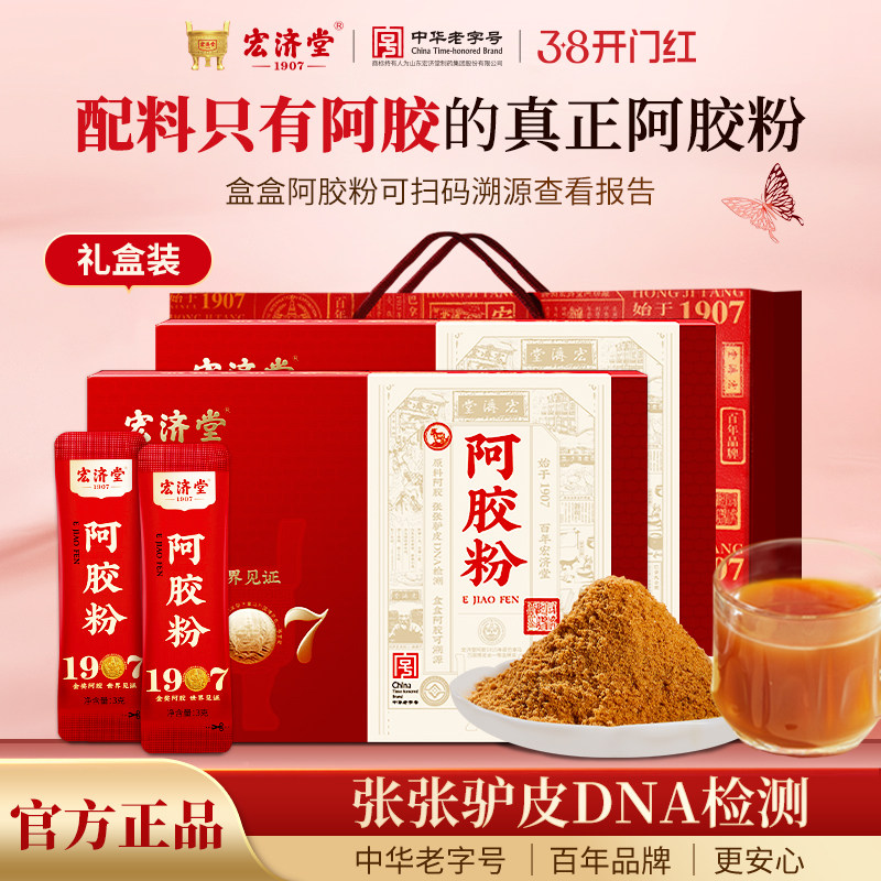 宏济堂阿胶粉阿胶速溶粉阿胶块成粉真驴皮道地山东阿胶养送礼盒装