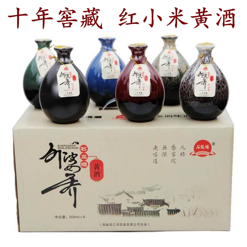 河南红小米黄酒南阳特产石龙堰外婆乔500mlx6瓶十年窖藏古法酿造