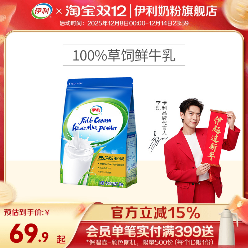 伊利新西兰进口全脂奶粉/脱脂奶粉高钙营养1kg/袋全家成人旗舰店