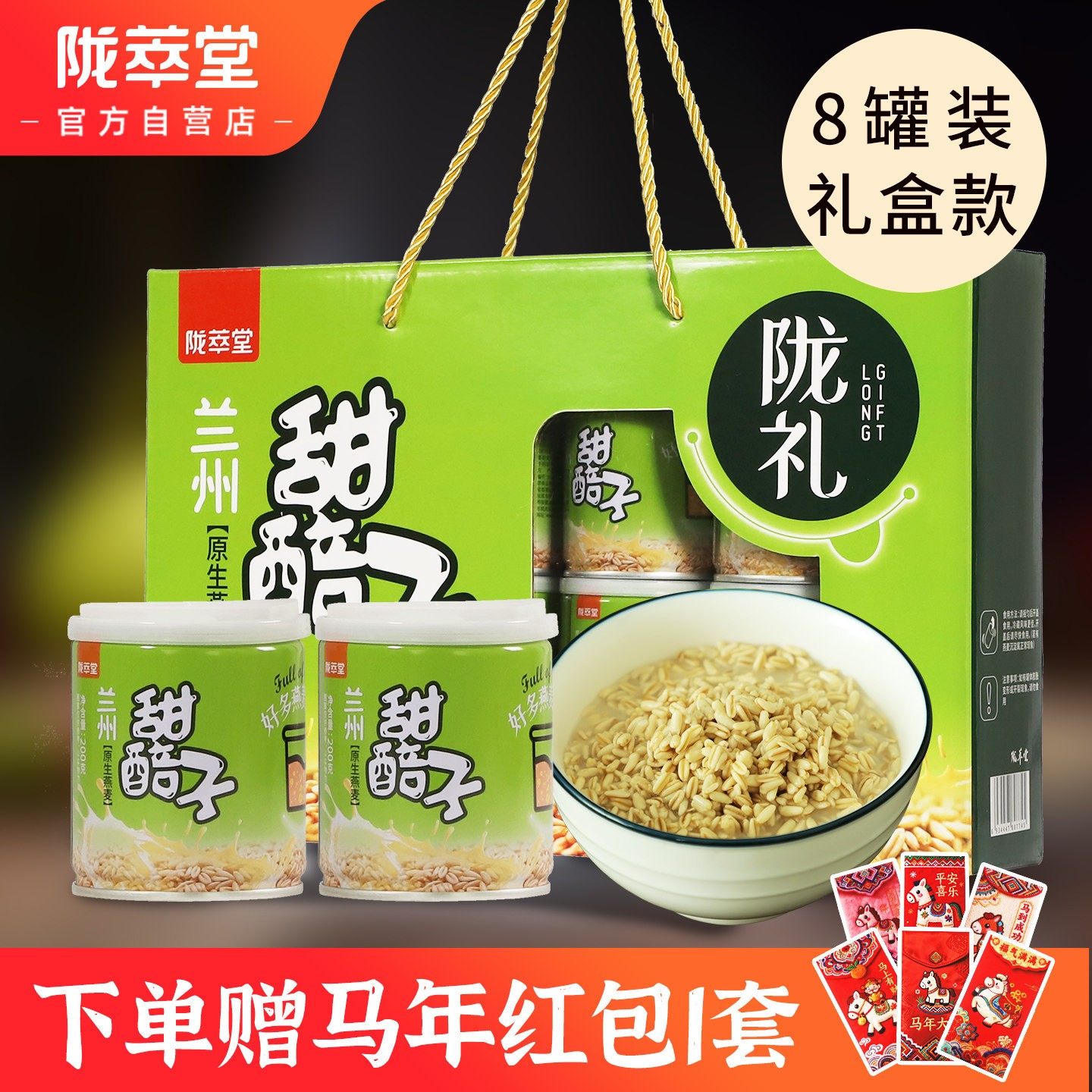 陇萃堂甜醅子兰州特产酒醅子燕麦甜胚子200g*8罐礼盒装临夏风味
