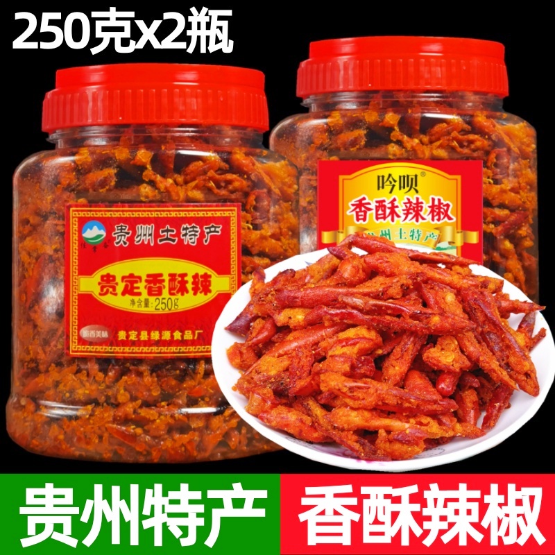 贵州香酥辣椒炸辣椒干贵定香辣酥麻辣香辣脆麻辣零食香脆椒250g*2