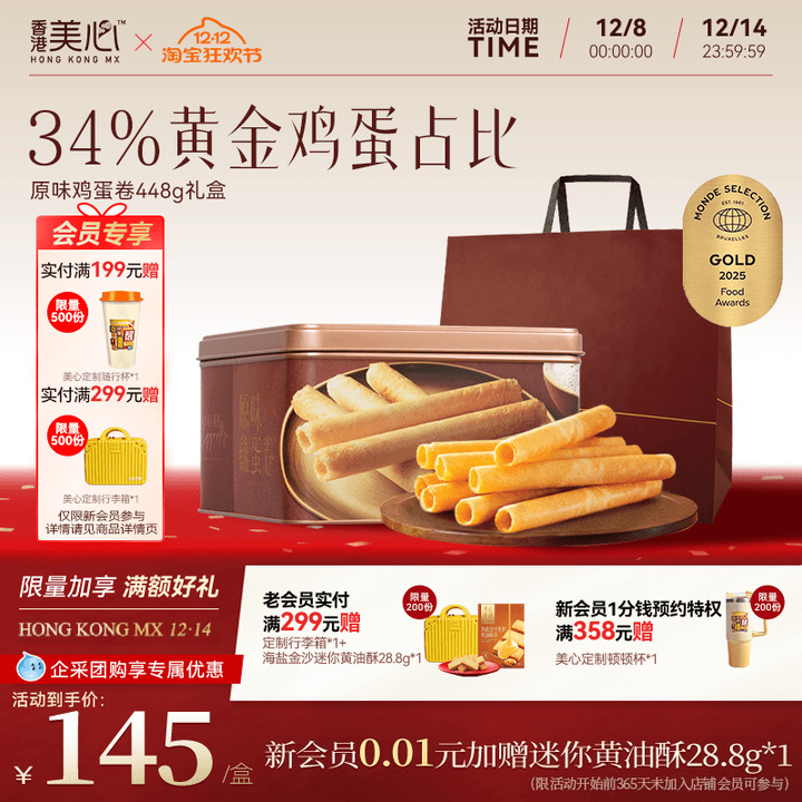 香港美心蛋卷448g进口蛋卷礼盒装进口网红休闲零食节日高端送礼