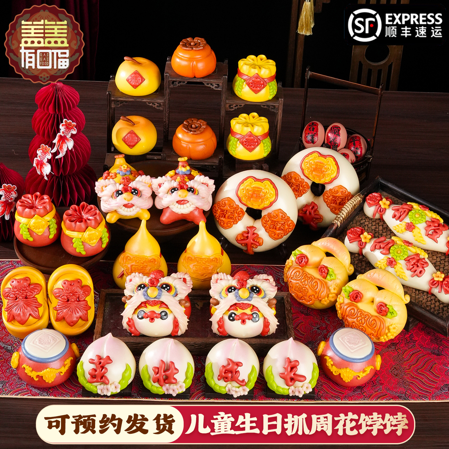 盖盖有口福胶东花饽饽周岁馒头醒狮生日宝宝抓周花馍满月面点礼盒