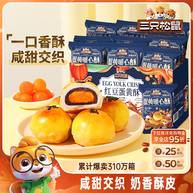 三只松鼠_蛋黄酥营养早餐特产小吃零食囤货传统中式糕点心送礼盒