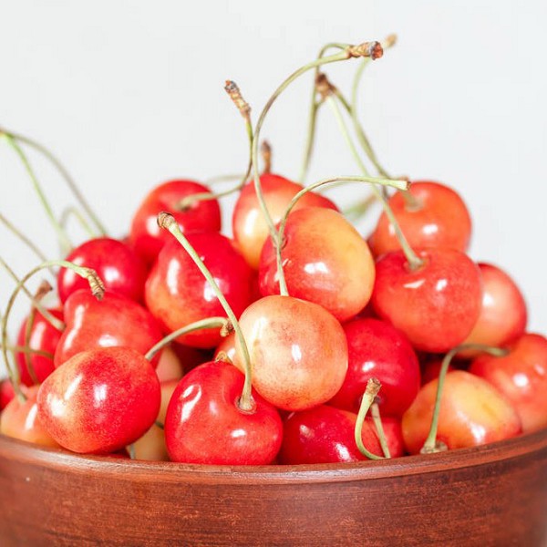 蒲江樱桃果实圆形,果顶平或微凹,果实较大,果面橙红至深红,富光泽,果皮较薄,果柄较短粗,果肉淡黄色、细嫩柔软多汁,味甜或甜酸,品质优。