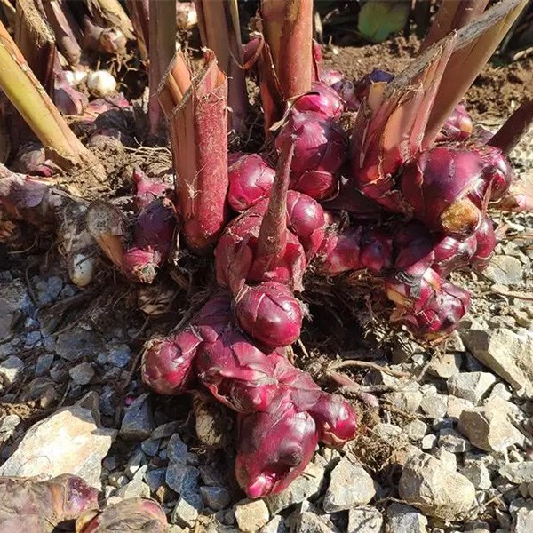 都安旱藕,美人蕉科,别名芭蕉芋、美人蕉、姜芋。块茎呈不规则圆锥形,有3-5个分枝,表皮紫红色或白色,皮较厚有纤维,剖面肉质淡黄色,有乳白色浆液浸出。蒸煮后肉白色质稍硬,口感粉糯、微甜、有清香味。其淀粉加工成的粉条呈淡褐色、半透明,耐蒸煮,煮熟后粉条口感爽滑、韧性好。