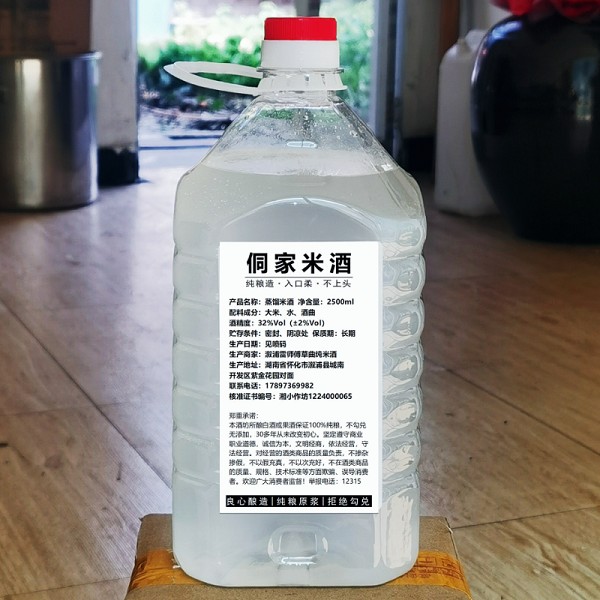 侗寨人用蒸熟的糯米拌上酒曲,盛于大酒坛,盖上纱布,发酵数天后,糯米就成了甜酒酿,呈乳白色,酒精在十度左右,味道甘甜可口,还有很多稠汁。真正的苦酒是在酒酿的基础上加上泉水,浸泡数天,等酒汁全部渗出糯米,泉水便成了酒水,即我们喝的苦酒。