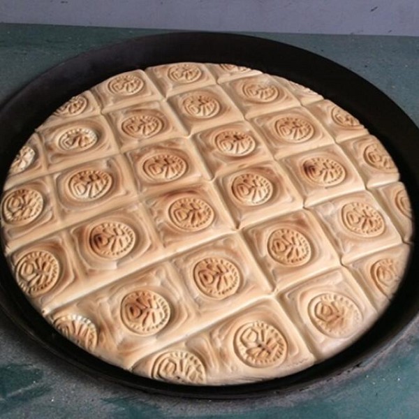 东里大饼为什么享此盛誉?其实很简单,但也不简单。说它简单,是因为它和别地的大饼在用料和制作过程方面,都是一样的。它既没有什么独特的秘密配方,也没有什么秘密不传人的工艺;说它不简单,是因为一种商品,在众多同类商品中,在一百几十年的时间里独领-,那是不易之事,必有独到之处,其独到之出是什么么呢?其一是,揉面时间长,不用揣揉而是用木杠子压,一个饼用五斤面,要保证反复揣压十五分钟以上。这样揣出来的面硬,有筋力,做出饼来甜、香、脆、格外好吃;其二是,他们始终保持一斤面只出一斤一两半饼,别地方的出一斤二两,有的出到一斤三两。别小看这一两半两,滴水穿石积少成多,一斤多出一两,一个大饼就多出五两,卖十个大饼就多出五斤,他们不图多赚钱,只求保持东里大饼的质量和信誉;其三是,善于掌握火候。火太旺则外糊里生,火太弱则烤的时间长,并不上色,里外都干,失掉外脆里嫩的特点。所以他们在掌握火候上,充分了运用了自己的经验,决不疏忽和大意;其四是,一百多年来,严格按照前辈传下来大饼制作工艺和方法操作,决不偷工减料,决不简单从事。在多挣钱和保证质量面前,他们首先从保证质量出发,对顾客负责。一百多前来,在众多的同行中始终保持着长盛不衰的榜首地位。