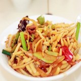 3、再加工;这一步最复杂。把圆柱状的面条搓断,相当需要功夫。初学者可先用刀把面条切成大约3cm长的短条,然后用手搓成鱼儿状。