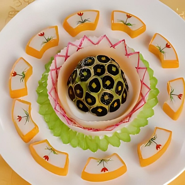酿发菜是宁夏银川金凤区的传统的名菜。酿发菜是一道以金黄色的豆腐和发菜为主要材料的传统美食,它色彩鲜亮、清香可口、营养丰富,因为“发菜”同音“发财”,在当地深受人们喜爱。
