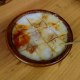 阳春砵仔糕,砵直径10厘米,高3厘米,内放粘米浆,放置蒸架中武火40分钟蒸熟,观砵边是否皱皮,为之熟透。吃法放置花生蒜油、秘制酱油、花生粉末,切方块状用竹签沾酱于花生一起入口。