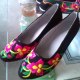 在鞋类大家庭中,鞋文化与刺绣艺术完美结合的中国绣花鞋是华夏民族独创的手工艺品,这种根植于民族文化中的生活实用品被世人誉称“中国鞋”。独领风骚的中国绣花鞋在华夏古老的大地上自从由母系社会转成父系社会后,便形成了男耕女织的社会分工,历代妇女一代一代传承着古老的绣花鞋技艺,在不盈方尺的鞋材上她们一针一线地述说着各个朝代的审美观念、文化传统、伦理道德与时尚价值。绣花鞋的刺绣修饰手法沿袭了东方装饰唯美的审美风尚,注重鞋面的章法,和鞋帮的铺陈,并配以鞋口、鞋底的工艺饰条。
