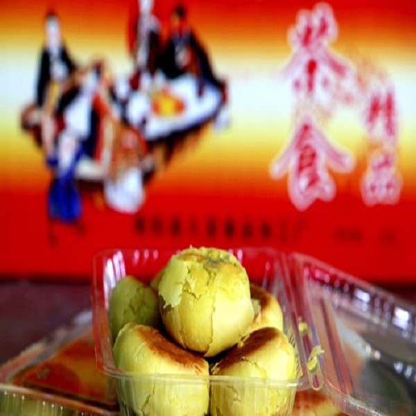 寿阳茶食山西寿阳著名的汉族小吃,是一种烙饼和月饼合二而一的早点食品。这种食品,外酥、里脆,形状象小酥皮月饼,据传,茶食这一名字,还是唐代大文学家韩愈起的。