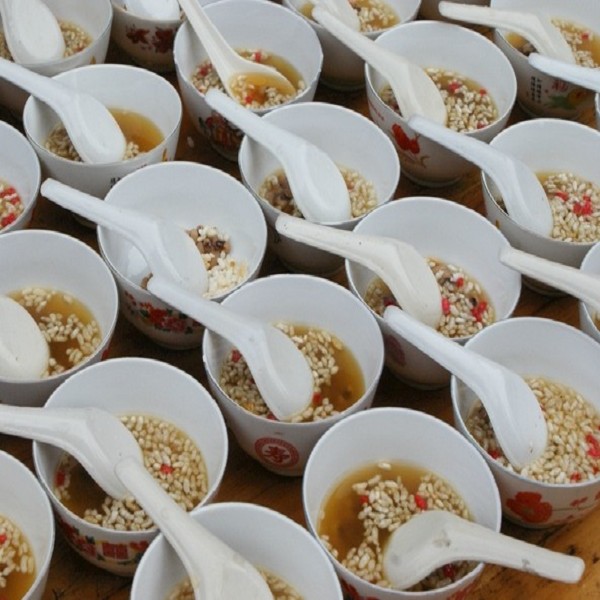 喝三江油茶,一般还配有糯米饭,油茶泡冷米饭和糯米饭是三江传统喝法。一种科学的说法是,因为侗族人世世代代居住在高寒山区,侗族油茶能御寒防病,还有生津解渴、提神醒脑、解除疲劳等功效。因其味微苦,所以又被称为“侗族咖啡”。侗家人喜欢喝油茶,已有上千年的历史。