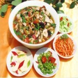 羊肉饸饹又称荞面饸饹(饸饹,古称"河漏"。陕西地区汉族传统名小吃,是北方面食三绝之一,与兰州拉面、山西刀削面齐名。饸饹,古称"河漏"。元代农学家王祯《农书,荞麦》:"北方山后,诸郡多种,治去皮壳,磨而成面或作汤饼。饸饹,因多用荞麦面制成,比较固定的叫法是荞面饸饹。饸饹,古称“河漏”。饸饹主料除荞麦面粉外,还有食用碱和食盐。