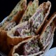 8、出锅之后,以快刀十字切开,上盘。从刀口上看,一层面夹一层肉,面如纸薄,肉如丝絮,里里外外不下十几层。