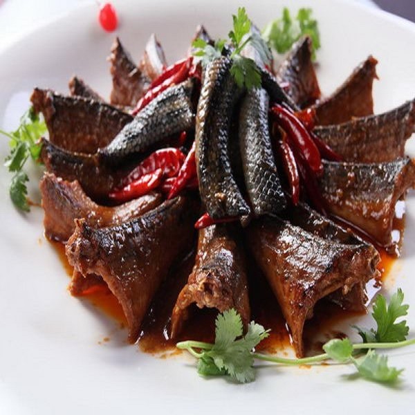 鲜嫩,香辣,酱汁味浓的蛇肉,满盘红艳艳的糊满辣椒,肥肥的蛇段已被浸得通红发亮,蛇肉紧实,泛着透明的油光。顺势一咬,蛇肉脱骨而出,甘香鲜嫩,那种食后始觉到的辣,辣得人倒抽凉气却又欲罢不能。