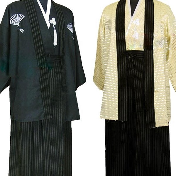 传说中日本神治时代有位伊邪那歧命神,他在举行祓除(用斋戒沐浴等方法初灾求福)之事时,常常脱去上衣、袴、带,那个时代日本人生活的遗址现已发现数千处,其分布区域,北起北海道,南至九州,几乎遍布全日本。原始社会的日本人以群体方式过着迁徙不定的生活,主要的生产活动是狩猎和采集(不要总是想到帝国时代去)。也许就是在那个时代,日本人开始了用动物的皮毛或者树叶加工御寒,走出了裸露的时代。 在绳文式文化时代后期(日本新石器时代,相当于前800-前500年)和弥生式文化时代(日本使用弥生式陶器的时代,相当于前300-300年),日本出现了两种基本的服装式样。一种是套头式圆领衫,造型类似于今天的圆领针织套衫;另一种是对襟式,门襟采用左衽,领尖至腰间,等距两初用细绳系结扣接,袖子为筒形袖,长度在膝以上。与上衣配套的还有袴、领巾、于须比。袴原指穿在下身遮掩于上衣内的一种裆布,但是这里的袴是指有腿部连接的类似于裤子的下装。男子有一种称为裳的缠腰,缠腰绕系于上衣,由于系结出现褶裥,使服装产生了一些变化。女子大都穿裳,与男子不同的是,女子裳长及地,形式与今天朝鲜妇女裙"其玛"颇为相似。
