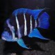 Burundi 布隆迪六间,鼎鼎大名的坦干伊克湖代表鱼种。俗称皇冠六间。是发现最早、饲养最为广泛的六间,主产于布隆迪境内,早在60年代末就为人们所知。它的特征是黑白间(也称栋线)对比分明,状态好时脸颊、胸鳍、腹鳍、臀鳍全是蓝色,尾鳍的后半部也是蓝色的,背鳍的外部边缘是蓝色,边缘内是浅黄色。