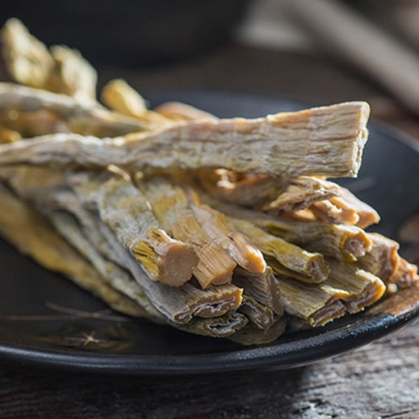 步骤1:春笋剥去壳,切去老根,用刀背拍松后切段。