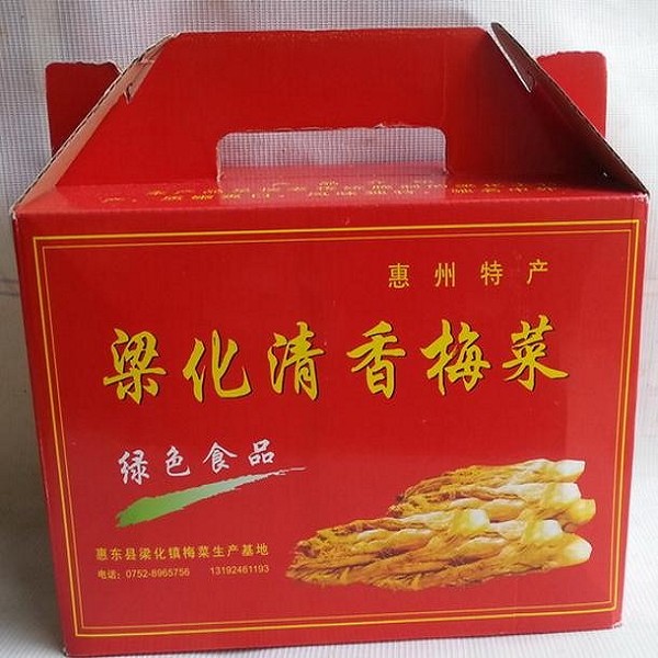 梁化梅菜采用新鲜梅菜、盐、红糖为原料精制而成,色泽金黄,清香爽口,鲜甜,不燥不湿,不寒不热,是送礼佳品。梁化梅菜以“惠州梅菜”作名牌驰名中外,产品除内销全国各地外,还远销东南亚各国。