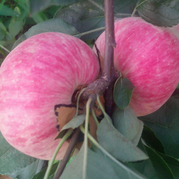 红富士:为大型果,平均单果重180克--300克,最大单果重可达400克以上。果实多为扁圆形,果形指数0.8左右,少数果近圆形。授粉不良或花序坐果多时,易产生畸肩、偏斜形果实。果梗较细,少数果梗基部有肉质突起。梗洼较广,中深较缓,偶尔有裂口。尊洼中深,较广而缓。果皮光滑有光泽,中厚而韧,光滑,蜡质中多。