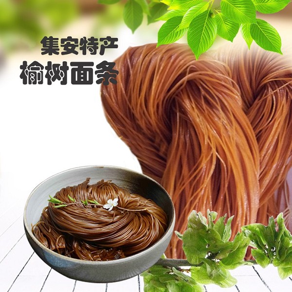 加入了晒干磨碎的榆树根内层的嫩皮的冷面,吃起来,细嫩柔滑,劲道易嚼,令人食欲大增,食用后口有余香。