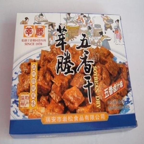 1995年,袋装莘塍五香干上市了,这也是温州地区第一批使用真空包装的五香干。同年,薛岩松成立了岩松食品公司,注册了“莘塍五香干”商标。