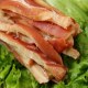 1、选用大张、体薄的干鱿鱼,去骨和头尾,横切成细丝(鱿鱼若过硬,可在小火上稍烤一下,使之受热为软,便于切丝),用温水洗净(不宜久泡),挤干水。猪肉切成6 厘米长、0.3 厘米粗的丝。绿豆芽去根和芽瓣。