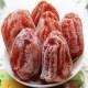 4.上霜:将两饼顶部相合,萼蒂部向外,在缸中放一层干柿皮放一层柿饼,反复叠放至将满缸,然后封缸,放在阴凉处生霜。柿饼上霜与环境温度有关,温度越低,上霜越好,所以要将缸放在阴凉处。