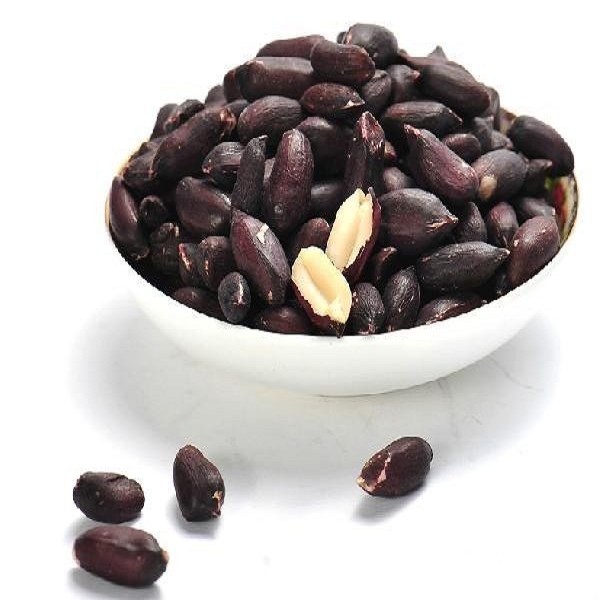 黑花生的外表和普通花生是一样的,只是果仁的皮是黑红色的,里面还是白色的。