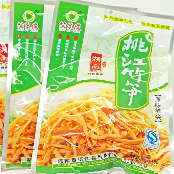 桃江竹笋产自中国十大竹乡之一的美人窝湖南桃江,独特的气候与土壤条件孕育着115万亩楠竹林。“桃江竹笋”2015年由桃江县竹产业协会向国家工商总局申请国家地理标志证明商标。主要产品有鲜笋(春笋)、玉兰片、笋干、水笋、榨笋、烟笋、笋丝、冬笋等十个产品。桃江竹笋不仅具有光泽绒黄、笋体饱满、笋纹浅细、笋肉朴厚、味香质脆等独特品质,而且营养成分齐全,主要成分有蛋白质、碳水化合物、膳食纤维、胡萝卜素、维生素B1、维生素B2、维生素C等并富含铁、磷、镁、钙、锌、硒等微量元素。含有人体必需的赖氨酸、色氨酸、苏氨酸、苯丙氨酸、谷氨酸和胱氨酸,是一种优良的保健蔬菜,名符其实的绿色无公害产品。