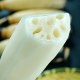 隆尧泽畔藕藕身洁白如玉,体型肥大,最长的藕有6~8节,长约1.3~1.5米。肉质脆嫩、质地细腻、藕体洁白而细、无纤维、甘甜清脆,藕的横截面藕孔排列极为规则,中间一大孔,外围六小孔,孔呈扁圆形。