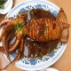 定海人晒鲞的历史由来已久,古志书上都有记载,最有名的当数“舟山白鲞”,据说这个“鲞”字还是战国时吴国阖闾发明的,意思是味道鲜美的鱼干。黄鱼鲞烤肉是定海的地方名菜之一,排在第二位的要算螟晡鲞,定海人俗话叫乌贼鲞。传说始皇东游时,将笔袋丢弃在东海,化为乌贼。怪不得它两须长似带,腹中还有墨囊。